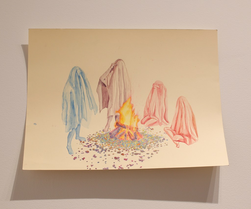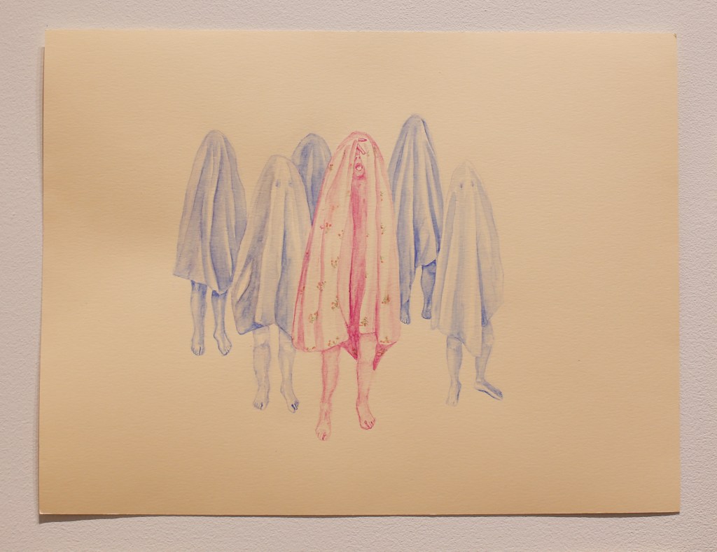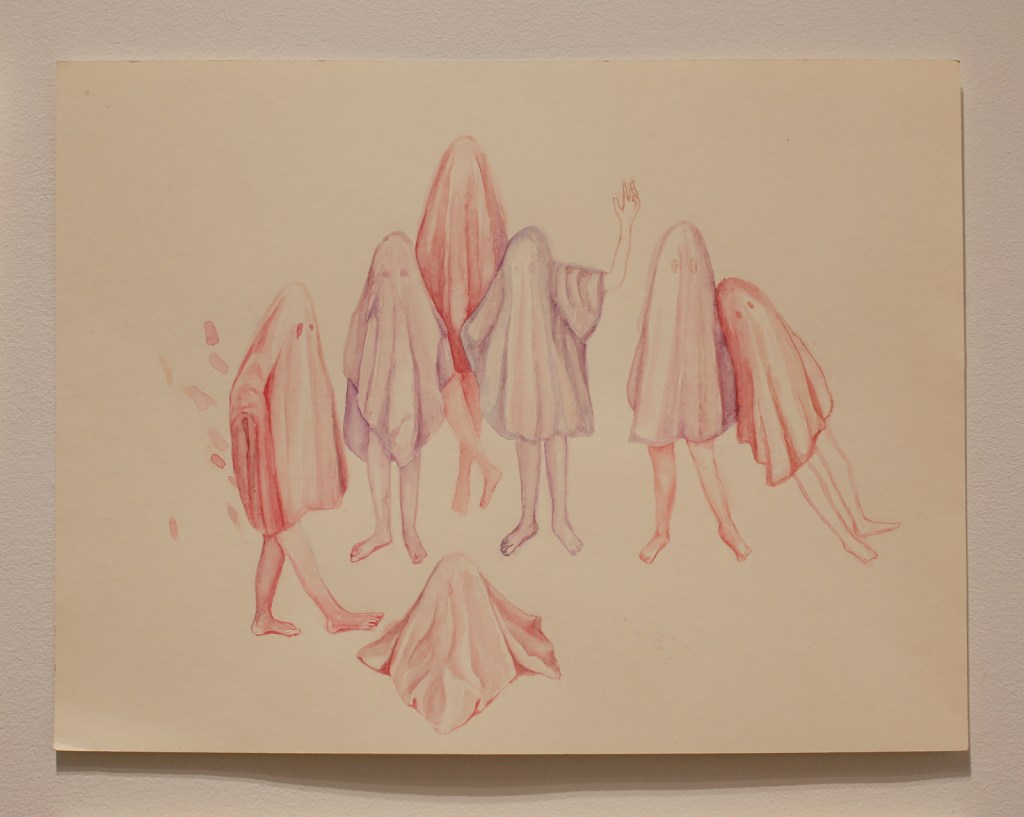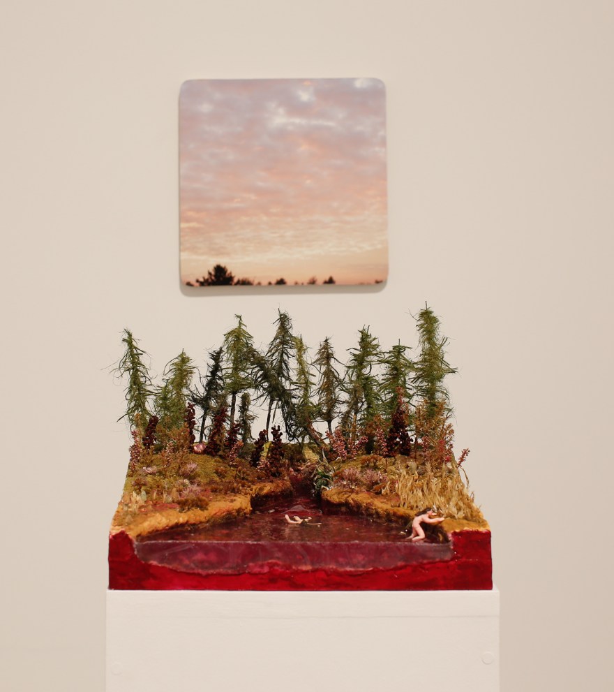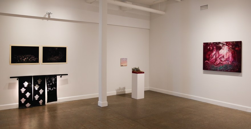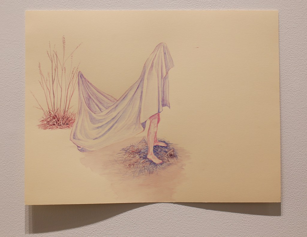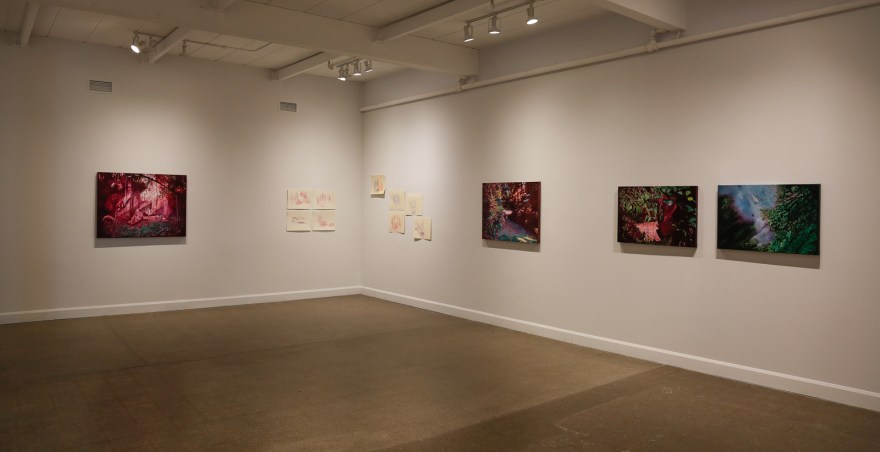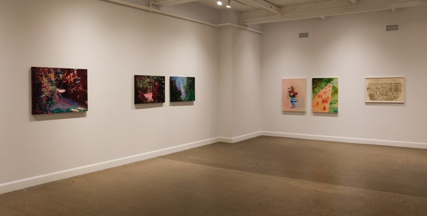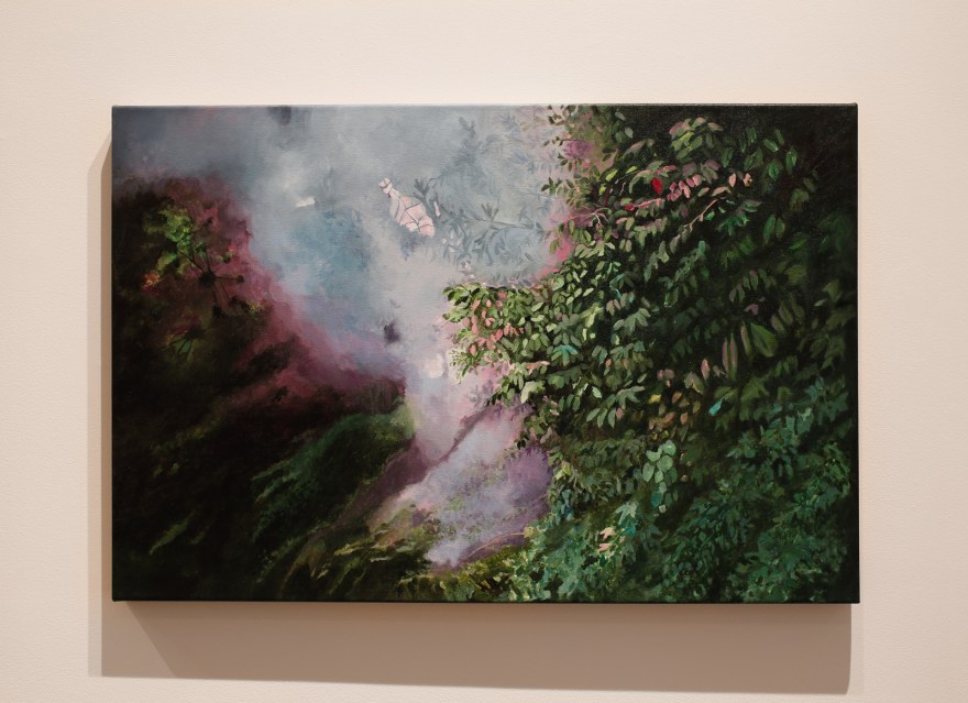 Les espaces vains IV, 2022, acrylique sur toile, 48 x 36 poucesLes espaces vains III, 2022, acrylique sur toile, 36 x 24 poucesLes espaces vains II, 2022, acrylique sur toile, 36 x 24 poucesLes espaces vains I, 2022, huile sur toile, 40 x 30 poucesHuit clos, 2022, diorama de plantes séchées sur socle avec impression numérique marouflé sur bois, 12 x 12 poucesSérie Les fantasmes , 2022, aquarelle sur papier photorag jaune, 13 x 17 poucesLueurs de passage I et II, 2022, impression à jet d’encre sur papier photorag jaunePot cassé et Route de babouins, 2020, acrylique sur toile, 30 x 40 pouces chacunFeuille de chou, 2022, graphite et aquarelle sur papier photorag jaune, 35 x 22 pouces